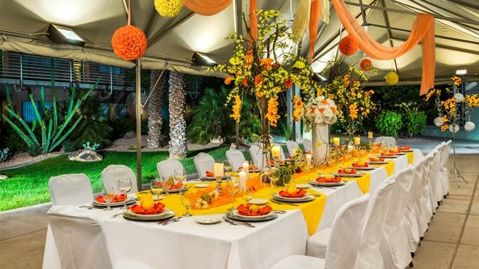 Host your ceremony and reception at our wedding venue in Phoenix and enjoy a variety of choices from a single resource. Brides can make a grand entrance in the glass elevator, say 'I do' in the pavilion with as many as 90 guests, and move indoors to the ballrooom for a banquet.