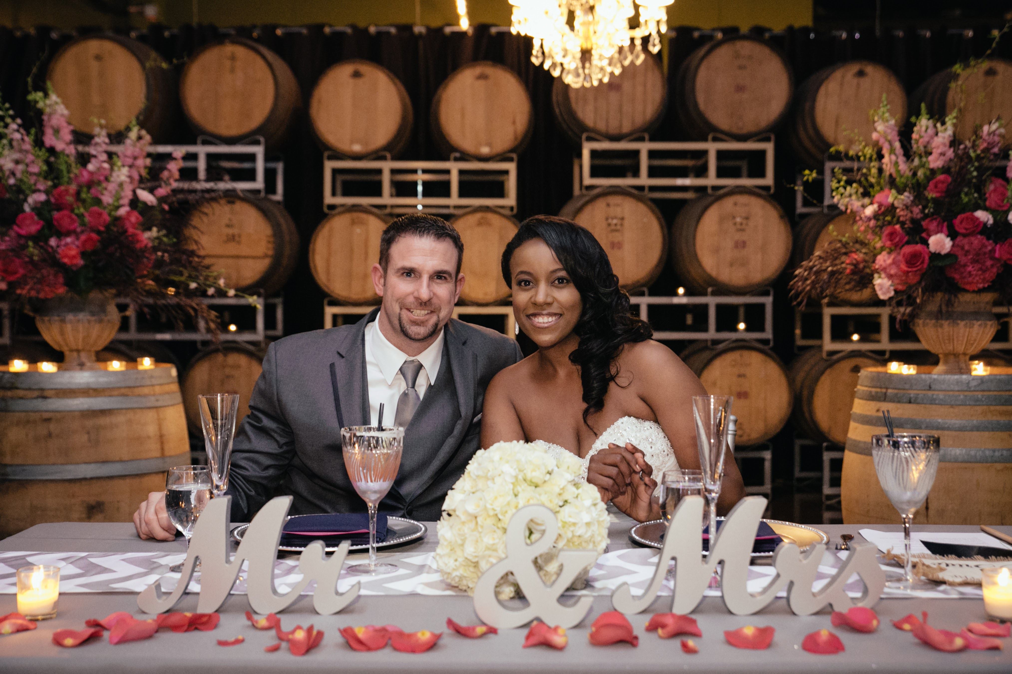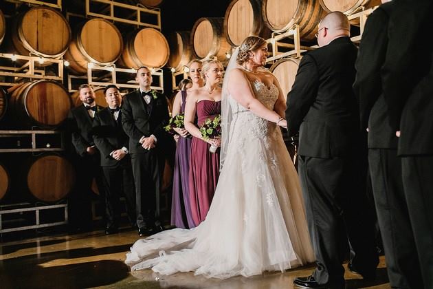 Located in the heart of the Bay Area on the San Francisco Peninsula, we offer the beauty and ambiance of a working winery without the drive to Napa or Sonoma. Our 7,000 square foot venue – complete with hundreds of French oak barrels, a 24-foot mahogany tasting bar and a 16-foot solid pine gathering table – is perfect for weddings for up to 300 guests. The room is adorned with candles, elegantly draped tables, romantic décor, lounge seating and Domenico wine glasses waiting to be filled with our award-winning wines.