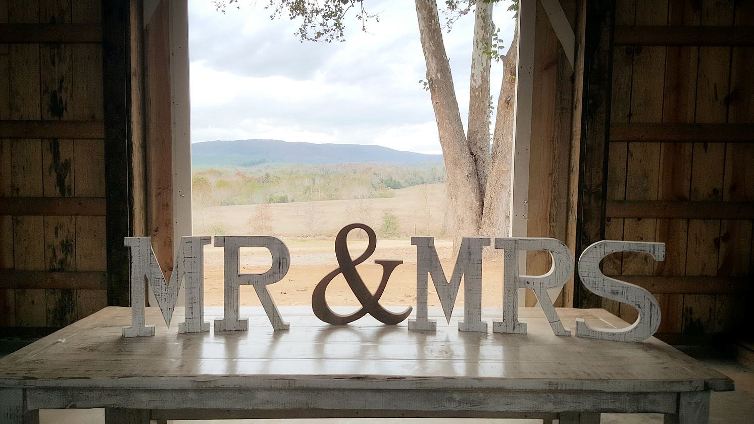 Celebrate your special day at the Barn! The barn is surrounded by gorgeous mountain views in the distance, rolling hills covering the 45 acres, and the tranquil sights and sounds of Spadra creek on the entire backside of the property. The rustic barn is adorned with elegant chandeliers to create a rustic romantic atmosphere. The barn is perfect for a charming rustic wedding reception and the grounds provide multiple outside ceremony sites for the bride and groom to choose from.
