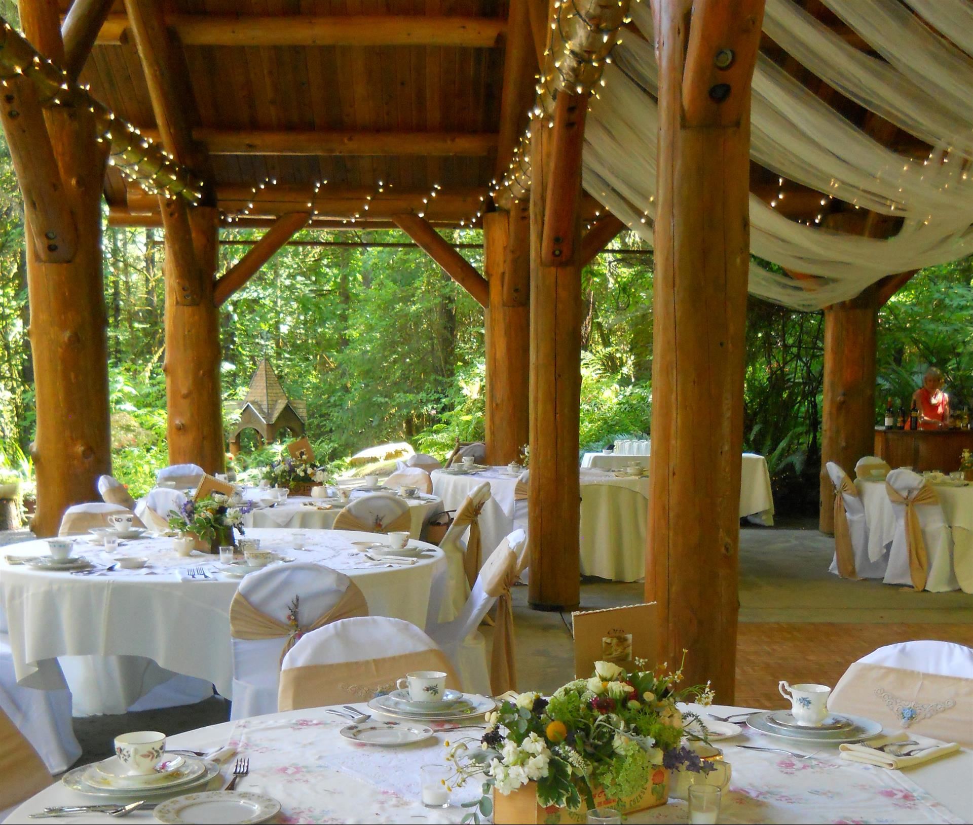 Come explore the magic of our elegant woodland wedding venue located in Junction City, Oregon. Located just outside of Eugene Springfield, we serve guests from all over Oregon including Corvallis, Albany, Cottage Grove, Philomath, Creswell, and more. Your guests will love our covered lodge wedding venue and handicap accessible outdoor setting.