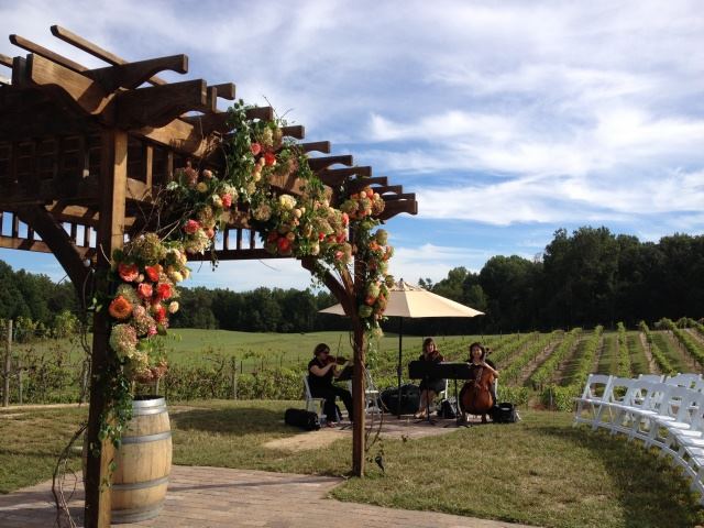 Running Hare Vineyard has several rental options available for your special events! The Tuscan Villa at Running Hare Vineyard is a multi-purpose facility and is available for rent year round for wedding receptions, corporate meetings/dinners, or any special occasion. The rental includes the use of the ballroom, covered porch, the ″ round dining tables, upscale gold chairs, dance floor and bars all for one flat price. We offer our clients the convenience of having their ceremony and reception all in one location! Our beautiful ceremony site is located in the vineyard with a paved walkway that leads from the bridal gate down the aisle to the Italian pergola. The rental of the ceremony site includes the use of unlimited white ceremony chairs.