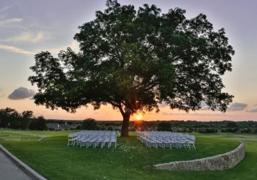 Celebrating your wedding, anniversary or any special occasion is made exceptionally memorable when hosted at Heritage Ranch Golf & Country Club. Located in Fairview, TX and serving the surrounding communities of McKinney, Plano and Allen, the Heritage Ranch Golf & Country Club provides the entire Metroplex one of the most elegant wedding venues for you and your guests. Reminiscent of the grandest ranches of the Texas Hill country, the spectacular interiors of the 24,000 square foot Clubhouse of handcrafted maple trim and beautifully adorned ballroom provide an inviting atmosphere for gathering with your family, friends or business associates. Providing expansive views of the surrounding golf course, the ballroom easily accommodates as many as 250 for a formal dinner or 300 for a reception. Extending beyond the ballroom is the outdoor patio perfect for spring and summer events.