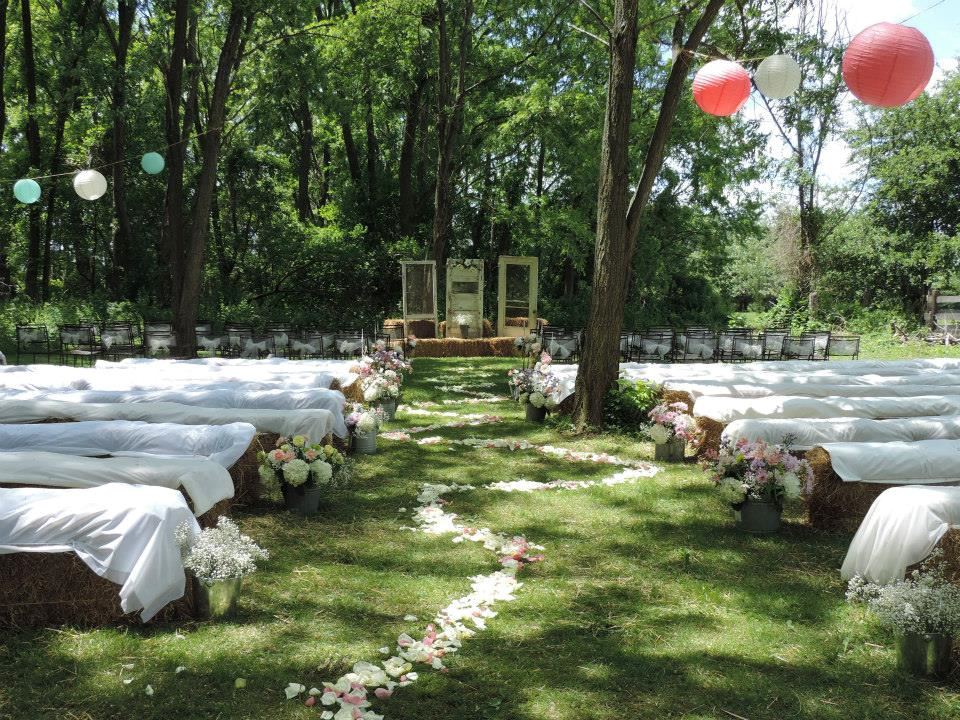 Plan the perfect country wedding at Fairwinds Farm in an intimate, shaded outdoor setting! Stay overnight in our B & B, then prepare for the day with your bridesmaids in our beautiful Victorian rooms. Pass through the arbor where we will pick you up in your choice of three wedding carriages and transport you to the wedding site under the trees where your guests are seated comfortably overlooking our perennial garden. After the ceremony, we will take you by carriage to the beautifully lit reception site. After the reception, options include a bonfire to finish the evening.