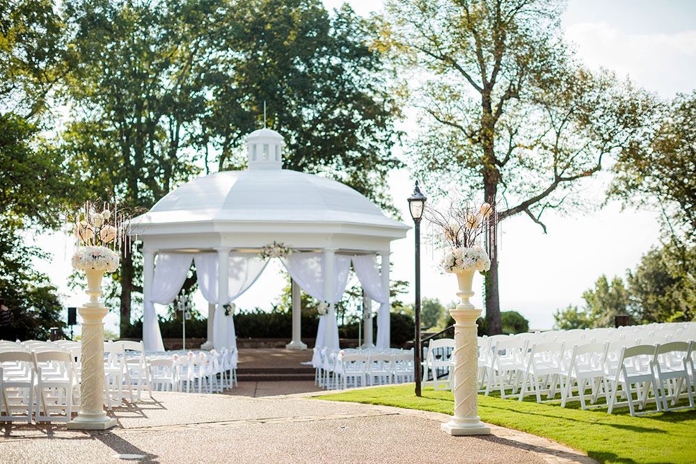 At Burritt, we have a multitude of spaces for you to choose from for your special day. Your guests can experience the most beautiful view in Huntsville at our Gazebo, or admire the architecture of Dr. Burritt's mansion built in the 1930s. Have cocktail hour on our veranda before moving in to your reception in our newest facility, Baron Bluff.