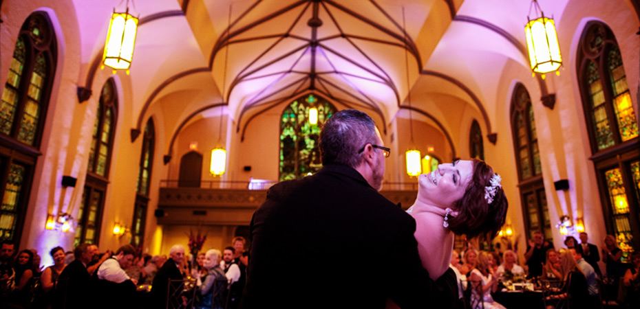 Located at 1808 S. 9th Street, this enchanting former church, schoolhouse and meeting room was built circa 1850 in historic Soulard. Today, it's a destination for wedding celebrations, corporate events and holiday parties. The interior boasts cathedral ceilings with magnificent original stained glass windows. The beautiful patio garden is unsurpassed with fountains, beautiful plantings and an outdoor bar. This venue seats up to 210 guests with a dance floor max.