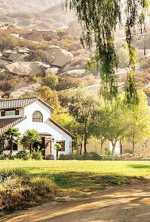 Far from the hustle and bustle of city life, Hummingbird Nest is an oasis of tranquility and majestic beauty. Extending over 126 acres, the estate’s landscape transitions from the earth tones of the Santa Susana Mountain that surround it to the vibrantly colored blooms of the native plants lining its curbing roadways and lush green pastures.